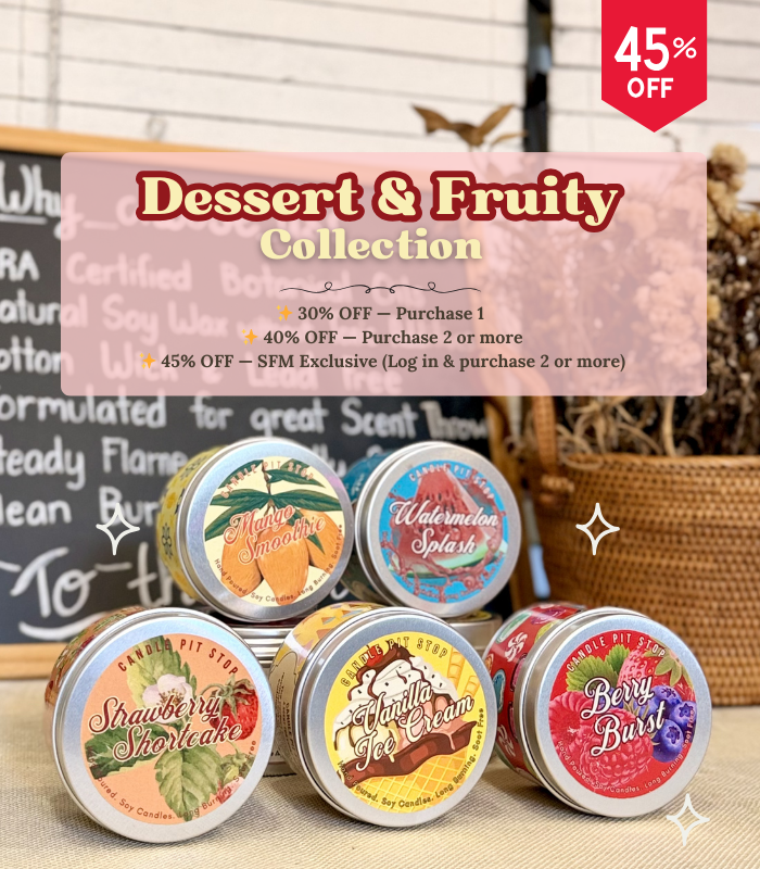 Since 2014, our Malaysia-based candle shop has been celebrated for its distinctive, in-house blended fragrances, each hand-crafted to offer a unique sensory experience. Available exclusively online, our scented candles cater to a variety of scent preferences and sensitivities, with every fragrance meticulously blended by our team. Discover our collection, featuring soy candle jars, wax cubes, votive candles, travel tin candles and gentle home and car fragrance range. Whether you’re looking to buy candles online for personal use or as thoughtful gifts, our hand-poured soy wax candles use high-quality natural ingredients to ensure a longer, cleaner burn with minimal soot. Our custom scents linger long after the flame is out, creating a comforting and lasting ambiance.Explore our curated selection of scented candles, beloved by enthusiasts across Malaysia, and experience the art of scent with our expertly blended, one-of-a-kind aromas.